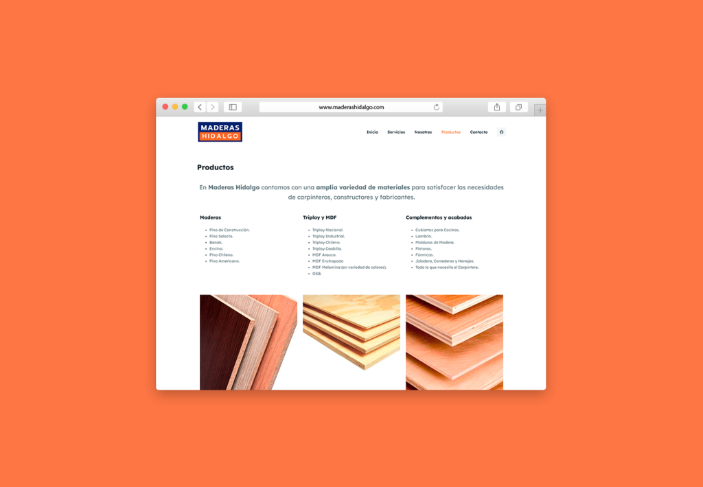 Empresa con más de 60 años en la venta de maderas, pintura para madera, melamina, MDF,herrajes, puertas de madera y maderas seleccionada de alta calidad, decidieron por tener su página web por primara vez para tener presencia en internet.
